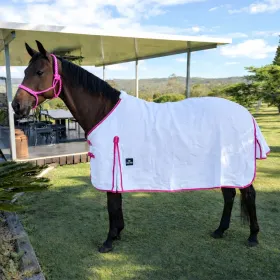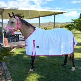 The Mac Tack Flag (white with 2 tone pink trim) 190GSM Lightweight rug is your go-to solution for keeping your horse cool and protected during the hotter months.