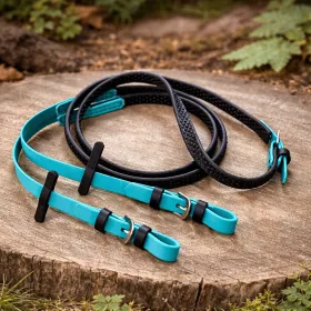 i mostly use leather reins but purchased these to match the bridle i ordered. The material used feels so nice in your hands, not rough like some grippy rubber reins. It’s hard to explain but the floppyness and suppleness is as close to top quality leather I reckon you could get. Not stiff and in the way like thicker rubber reins.